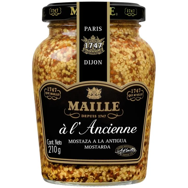 A mostarda Maille L´Ancienne é caracterizada por sua textura granulada e poderoso sabor. Uma pitada de avelã, o tenro crocante das sementes de mostarda e os seus intensos sabores picantes transportam-nos ao coração da Borgonha. Dá uma dimensão totalmente nova à uma variedade de pratos, dos mais simples aos mais sofisticados. Perfeito com sanduíches ou até mesmo salmão grelhado, completa a paleta de sabores em uma marinada ou molho de salada e instantaneamente dá um toque de requinte à receita do dia a dia.